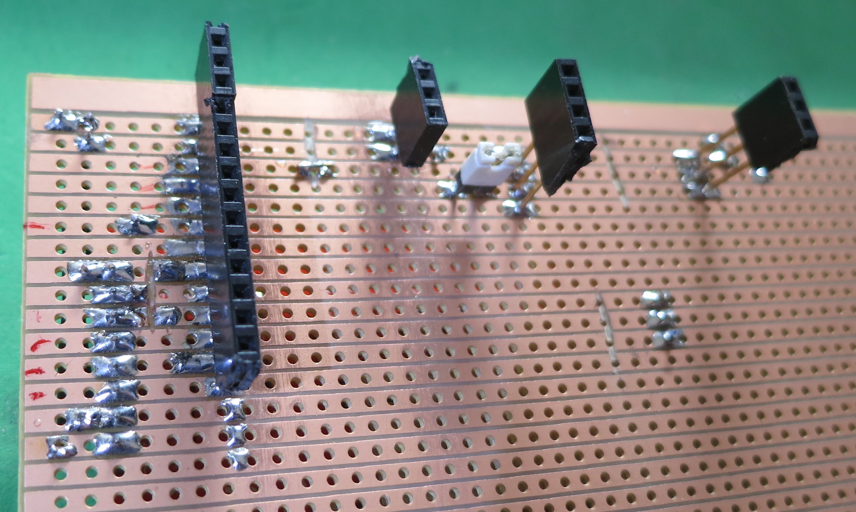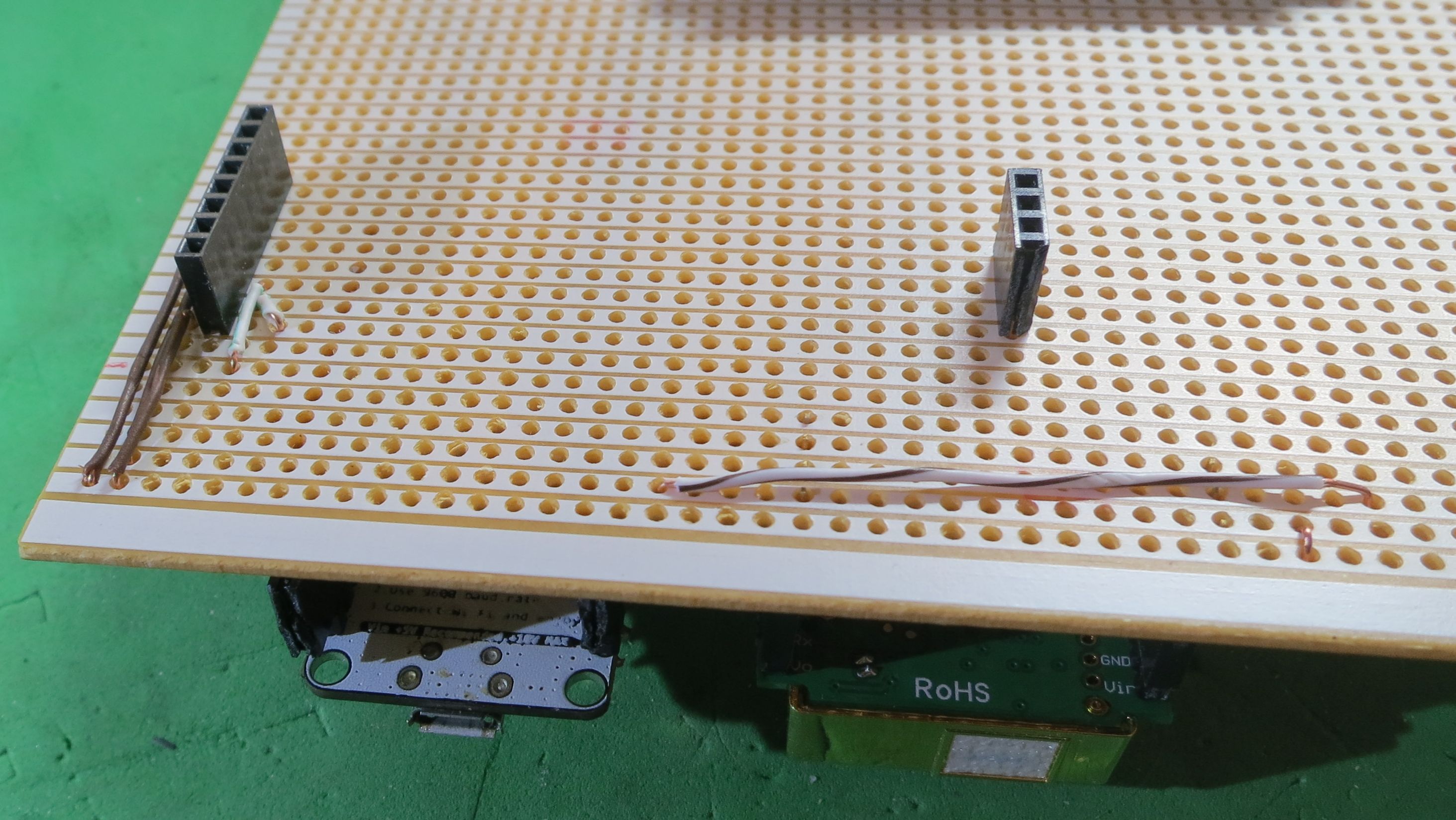 El circuito lo he montado en una placa de tiras. Hay que tener en cuenta que el Nodemcu y el sensor están soldados por el lado del cobre de las tiras. Es decir, en la imagen inferior estos dos componentes están detrás de la placa.