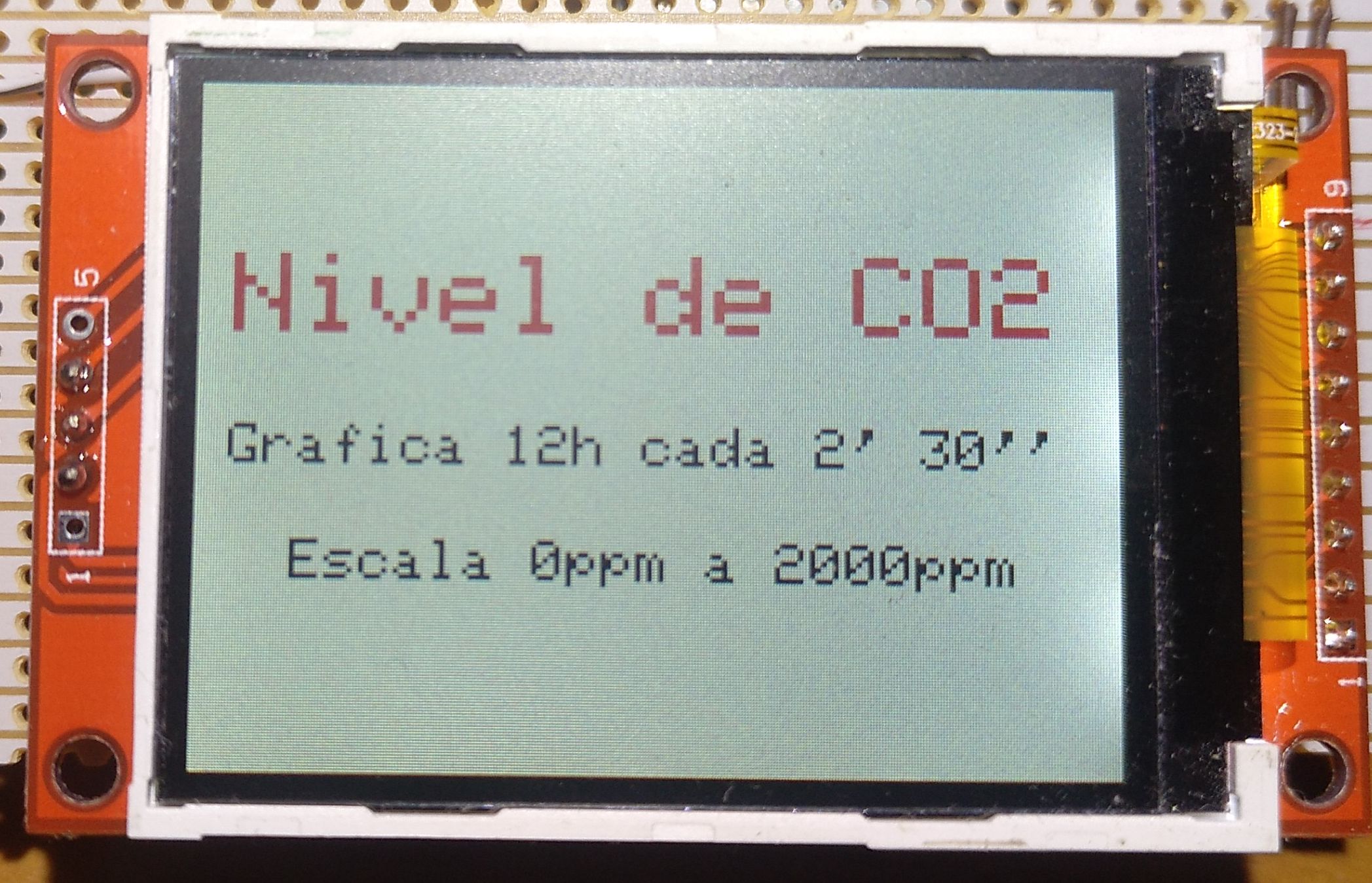 El sistema consta del sensor MHZ19, una pantalla de 2,2 pulgadas (resolución de 240x320) y un Nodemcu V3 por la posibilidad de enviar los datos via wifi si así se deseara.