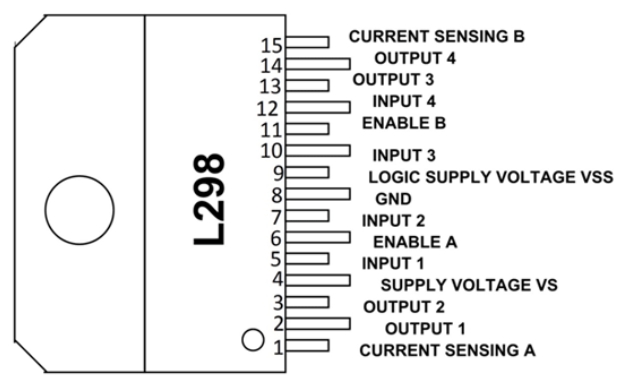 Normalmente el L298 se vende ya montado en un módulo con regulador de voltaje de 5v, dispador, conectores, etc.