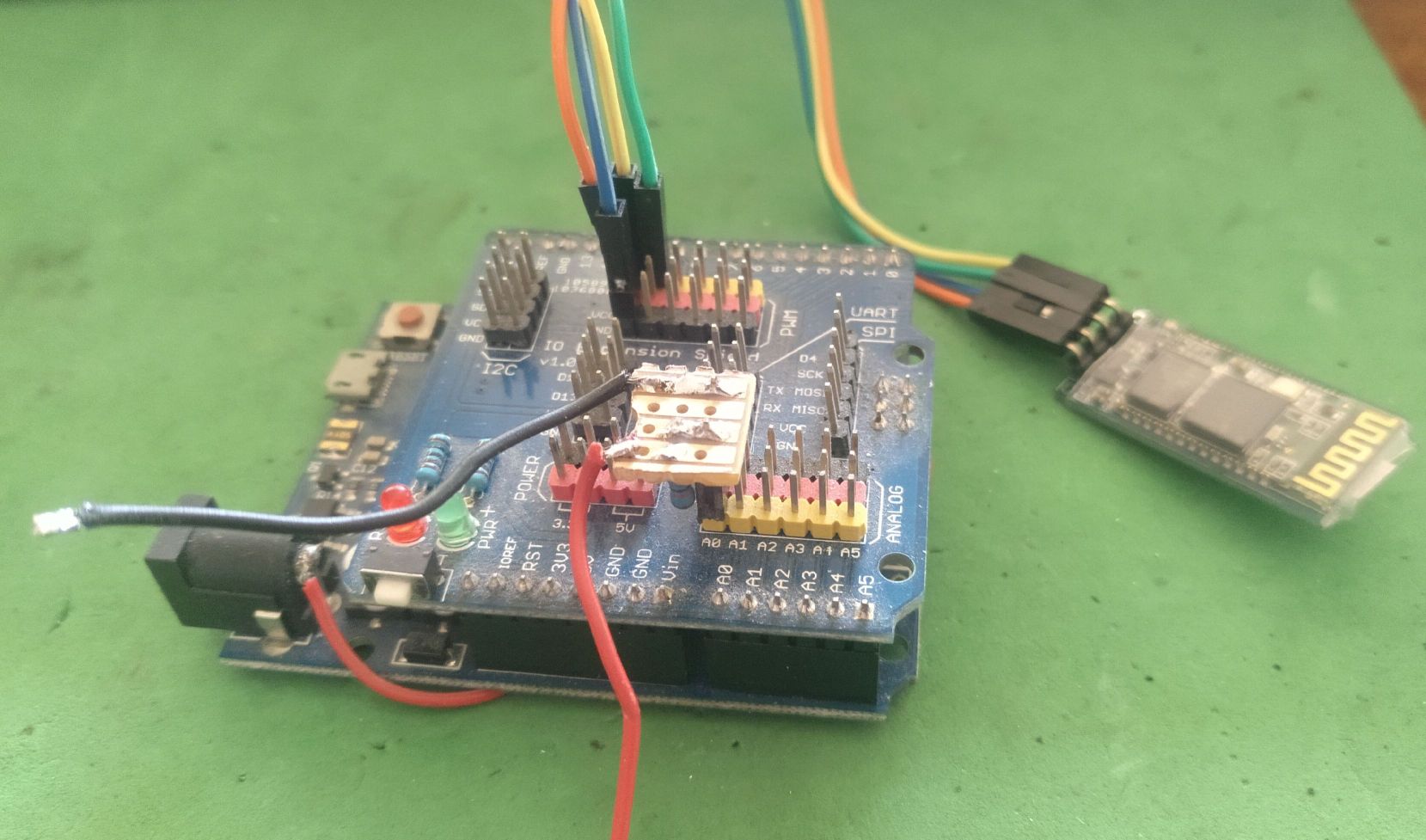 El circuito, basado en Arduino, mide los voltajes a través de un puente resistivo y envía el dato por Bluetooth a nuestro teléfono que lo presenta en pantalla y nos lo "canta" vocalmente cada vez que hay una variación.