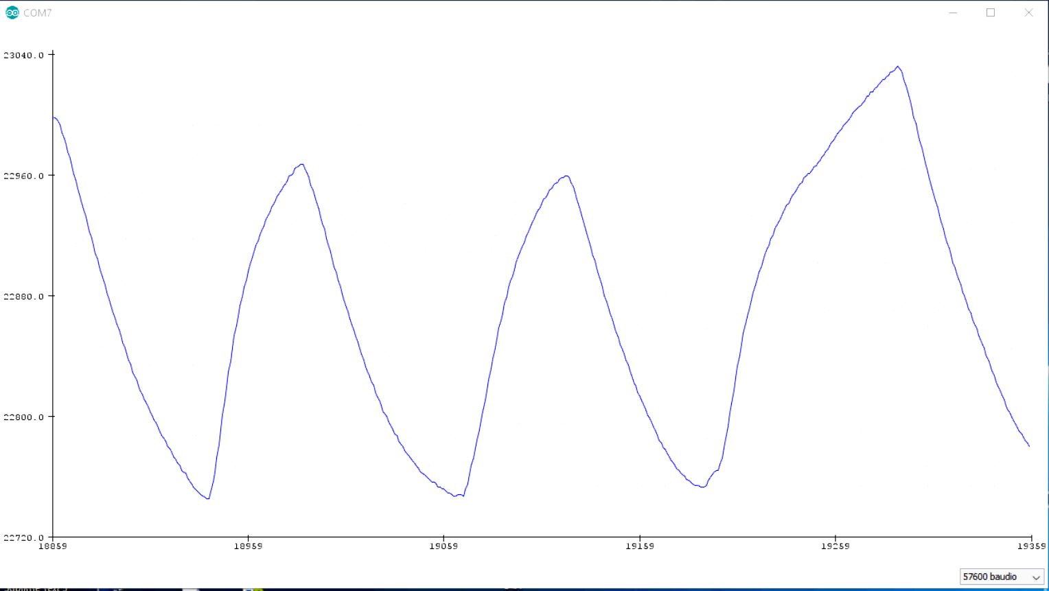 void loop() { // read the value from the sensor: sV=analogRead(sensorPin); Serial.println(sV); delay(20); }