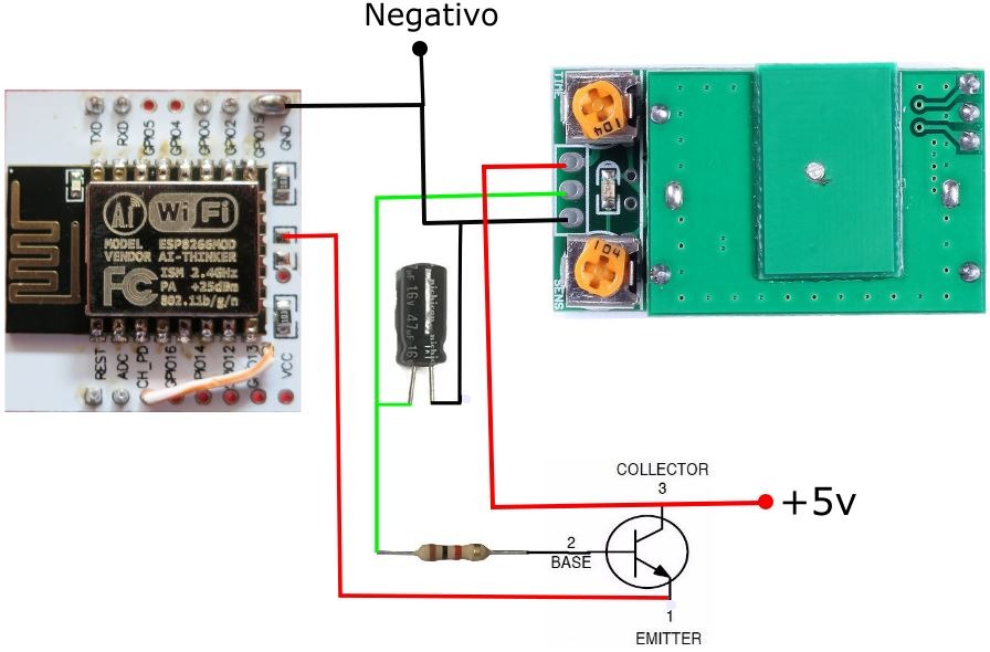 //con salida sensor microondas a través de transistor
