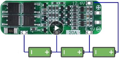 Las baterias de litio (2,7v) necesitan un controlador de carga individual para cada una de ellas. He usado uno que puede dar hasta 20A al motor que suele gastar unos 8-10A.