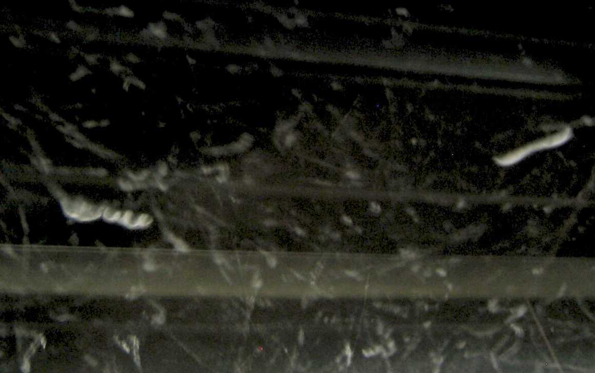 El multímetro mide temperatura con un termopar en el aluminio refrigerante que ingresa agua a casi cero grados y se calentaba a unos 20ºC. El plomo sobre el vidrio es para asegurar la estanqueidad. La cámara está en modo enfoque manual, en automático tiende a enfocar el cristal y no el fondo del tarro donde están las trazas.