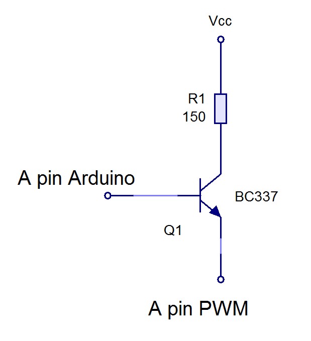 Como el PWM funciona al máximo con nivel lógico bajo, he añadido un transistor y una resistencia para adaptarlo al uso con el Arduino y el firm GRBL. En la foto, el cable amarillo-verde va al pin 11 del Arduino Nano. La resistencia no se ve al estar soldada por debajo.