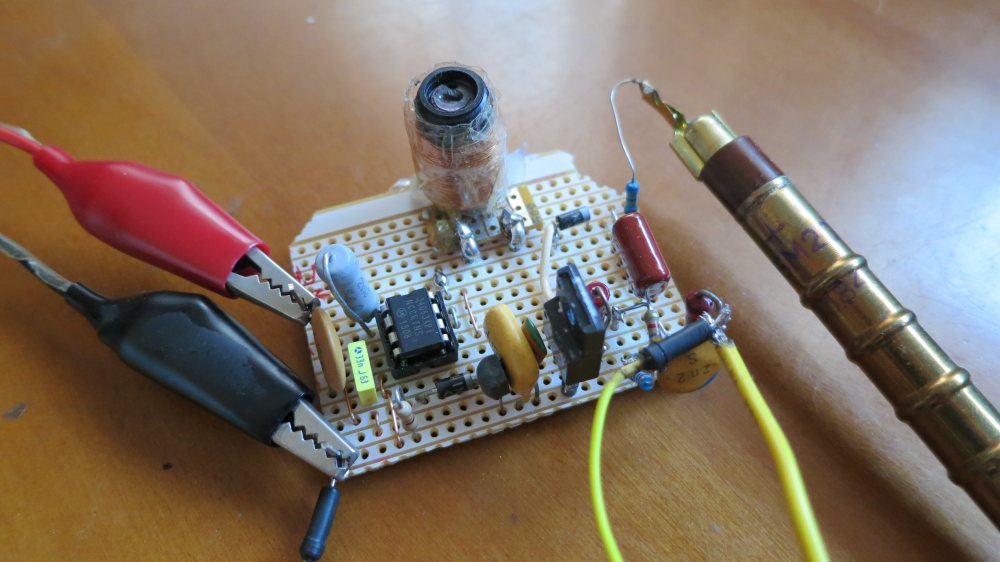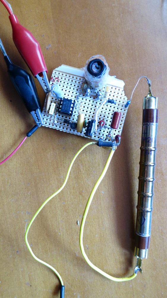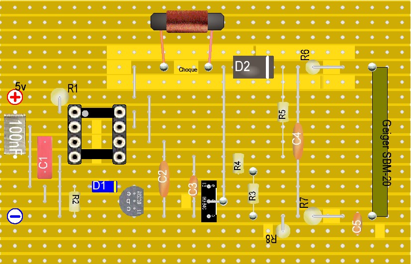 El circuito esta montado en una placa de pistas. Hay que tener cuidado con la parte de alta tensión ya que se produce un arco entre pistas que da como resultado la inmediata destrucción del circuito integrado.