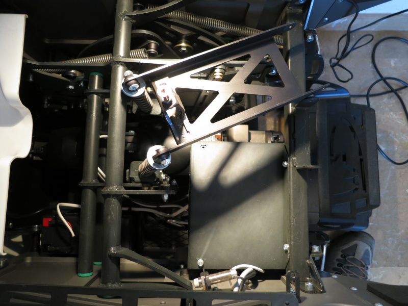 Comenzamos a desarmar; quitar el asiento, que son solo 4 tornillos. Fijarse en que agujero esta el tornillo. Variandolo hacia delante o atras podemos variar el centro de gravedad de la máquina a nuestro gusto particular.