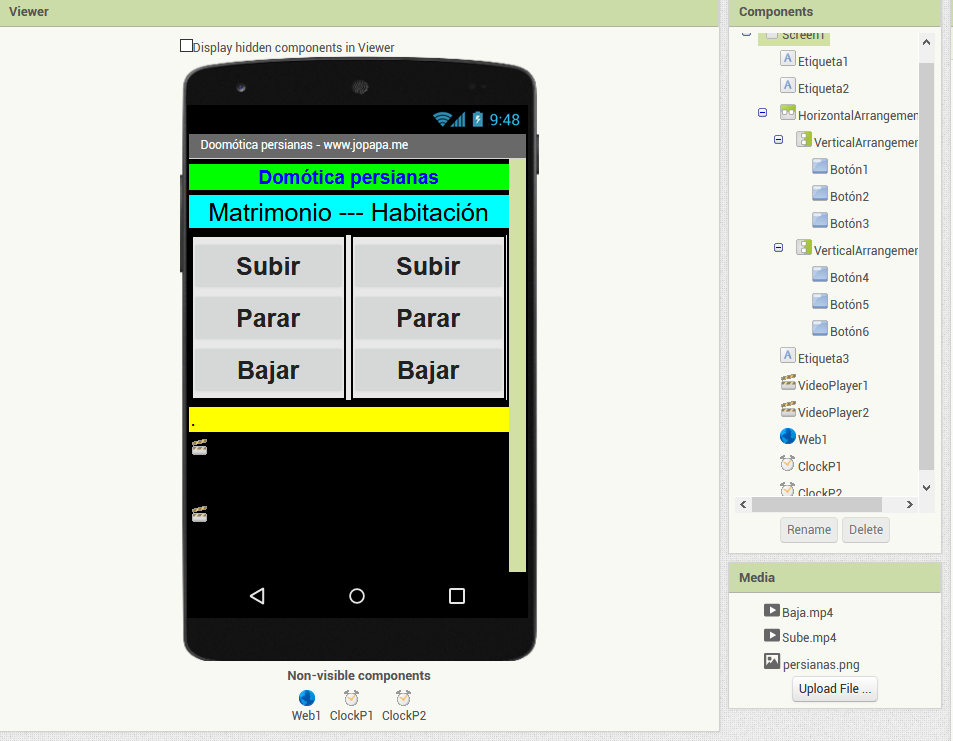 Yo he preferido hacer una App para el teléfono con App Inventor y he añadido videos de la subida y bajada de las persianas.