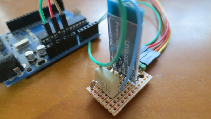 Conectado el Arduino a nuestro montaje con el HC-05, alimentamos el Arduino con una fuente externa, independiente de su entrada USB de programación (que ya no usamos).