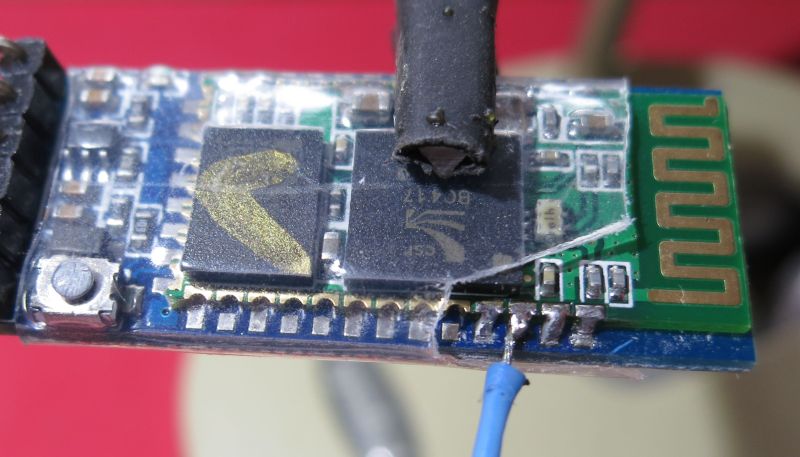 Esto podemos hacerlo a través de Bluetooth con un módulo del tipo HC-05. De este módulo hay dos versiones. Una tiene un pin llamado KEY y la otra no, pero tiene un pequeño botón.