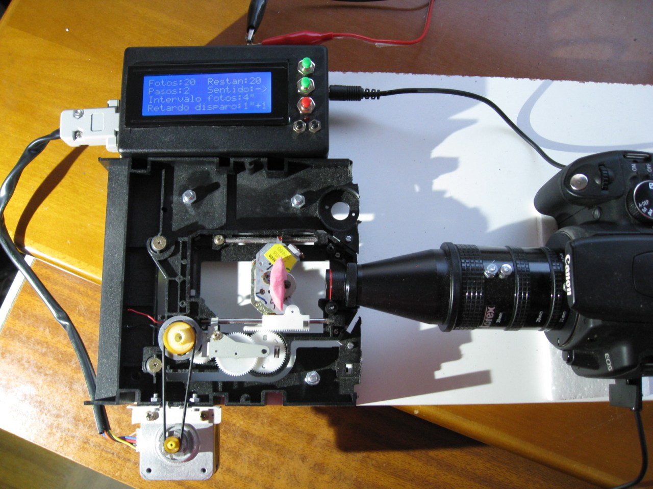 No es original, pero es lo mas barato y a mano que tenia. El mecanismo es de un CDRom de desecho y el motor recuperado de una impresora matricial.