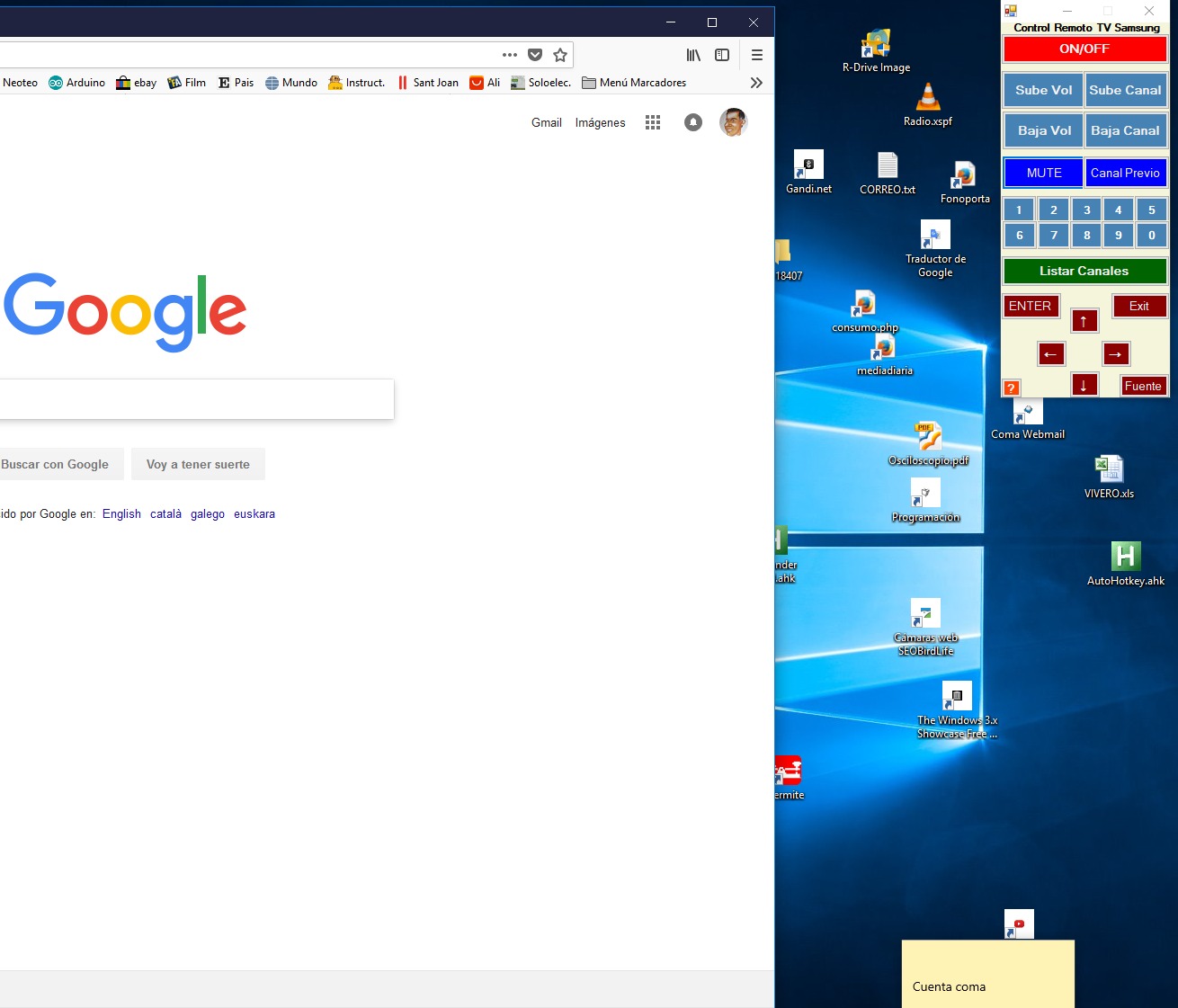 Lo uso en el mismo despacho del ordenador para controlar una TV Samsung (con Imagenio de Movistar) A veces la tengo en marcha junto al ordenador y cambiar de canal y usar el MUTE (del que soy fanático admirador) dejando el ratón y coger el mando es un incordio. Con esto se soluciona, puedo controlar la TV con un click del ratón.