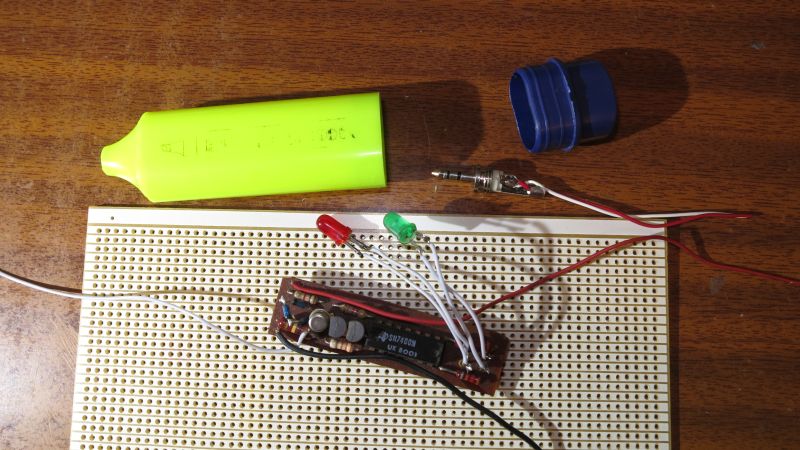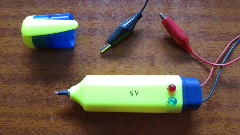 Tester lógico para TTL. El circuito es bastante simple y cabe en un rotulador. Como punta he usado un jack macho de los finos.
